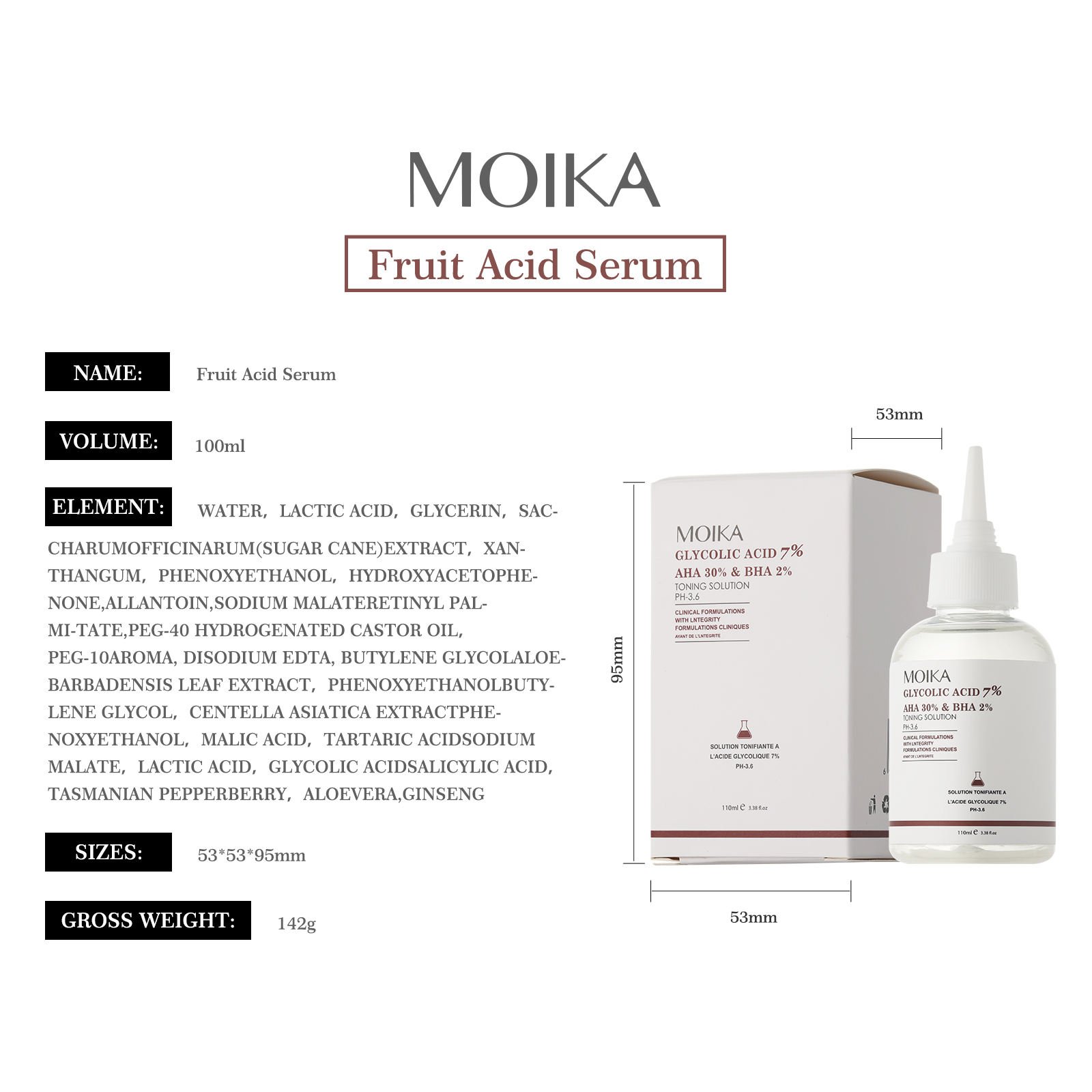 Moika ordinay Glycolic Acid 7% Toning Solution 240ml Fruit acid toner 7% glycolic acid serum Blackhead and cutin removing serum